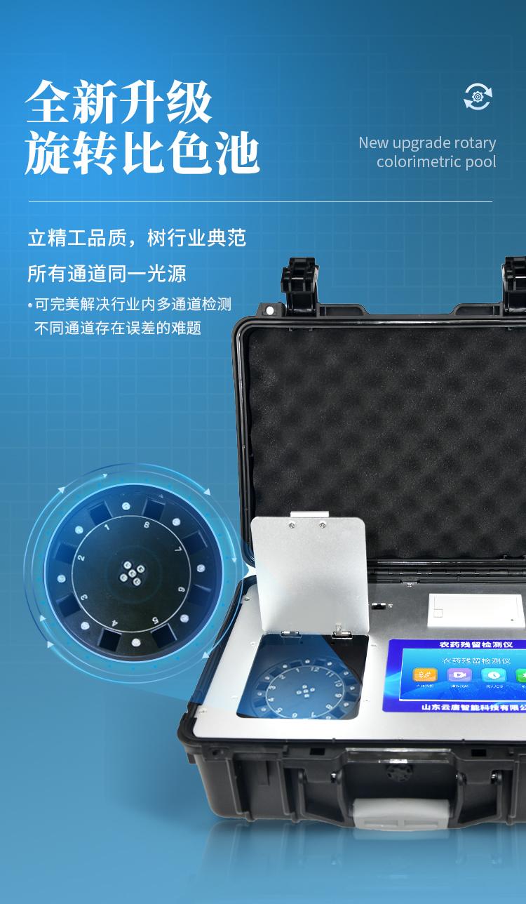 山東云唐智能科技有限公司生產(chǎn)的農(nóng)藥殘留檢測(cè)儀廣泛應(yīng)用于主要用于蔬菜、水果、茶葉、糧食、農(nóng)副產(chǎn)品等食品中農(nóng)藥殘留的快速檢測(cè),依據(jù)國(guó)標(biāo)GB/T5009.199-2003進(jìn)行檢測(cè),適用于果蔬茶生產(chǎn)基地以及農(nóng)貿(mào)批發(fā)銷售市場(chǎng)現(xiàn)場(chǎng)檢測(cè),餐館、學(xué)校、食堂、家庭果蔬加工前的安全速測(cè)等。