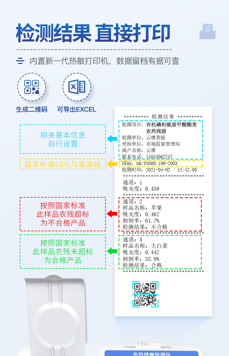 檢測標準:依據國家標準方法(GB/T5009.199-2003)以及世界衛生組織WHO、世界糧農組織FAO殘留農藥檢測標準、世界環境保護局EPA參照攝入量等要求來設計。采用酶抑制率比色法對水果、蔬菜等農林產品中有機磷和氨基甲酸酯類農藥含量進行快速準確的檢測。