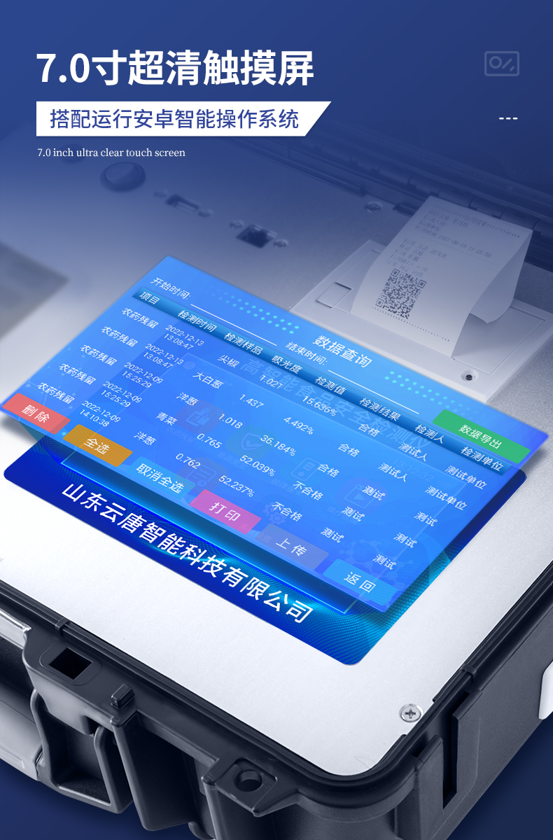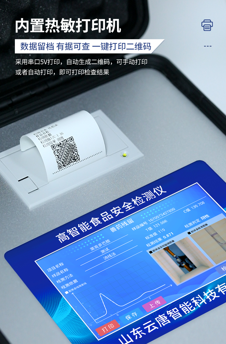 5、配備新一代嵌入式熱敏打印機,可選擇手動打印或者自動打印,檢測完成可自動打印檢測報告和二維碼。