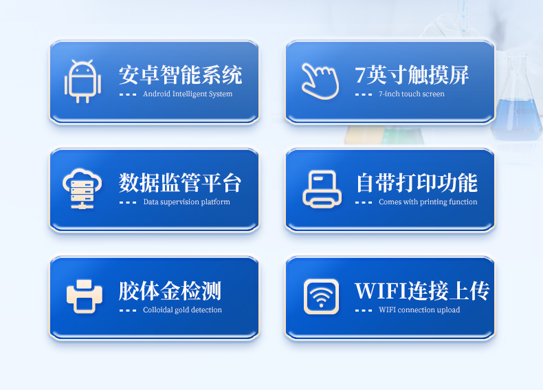 金標度數(shù)儀快速定量檢測獸藥殘留、抗生素類殘留、激素類殘留、毒素類殘留,化學(xué)類殘留等幾十種項目并可根據(jù)用戶需要擴充新的檢測項目如農(nóng)藥殘留、食品添加劑、色素、可現(xiàn)場快速檢測農(nóng)藥殘留、鹽酸克倫特羅、沙丁胺醇、萊克多巴胺、四環(huán)素類、硝基呋喃類、磺胺類、沙星類、氯霉素、孔雀石綠磺胺類、豬藍耳病毒、豬瘟病毒、黃曲霉毒素B1、豬偽狂犬病毒、豬偽狂犬病毒gE蛋白、豬口蹄疫3ABC蛋白、豬口蹄疫病毒IgG、豬細小病毒、雞禽流感等定性和定量快速檢測等、并且可以連接食品安全監(jiān)控系統(tǒng)。