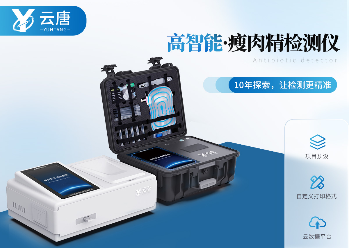 山東云唐智能科技有限公司生產的瘦肉精檢測儀可現場快速檢測鹽酸克倫特羅、萊克多巴胺、沙丁胺醇、己烯雌酚、喹乙醇等。儀器預留··· 熱線:133-7109-8225