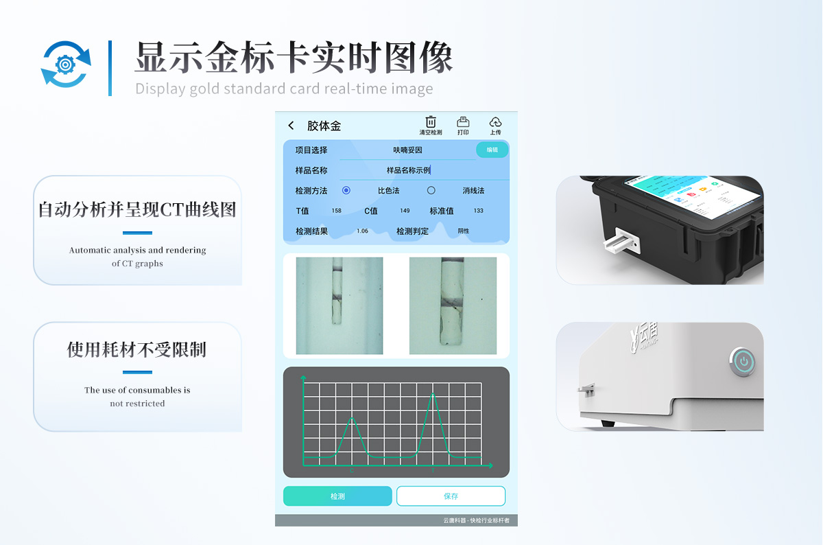 兼容市場上其他膠體金卡,使用耗材不受限制,極大增強用戶使用體驗。
