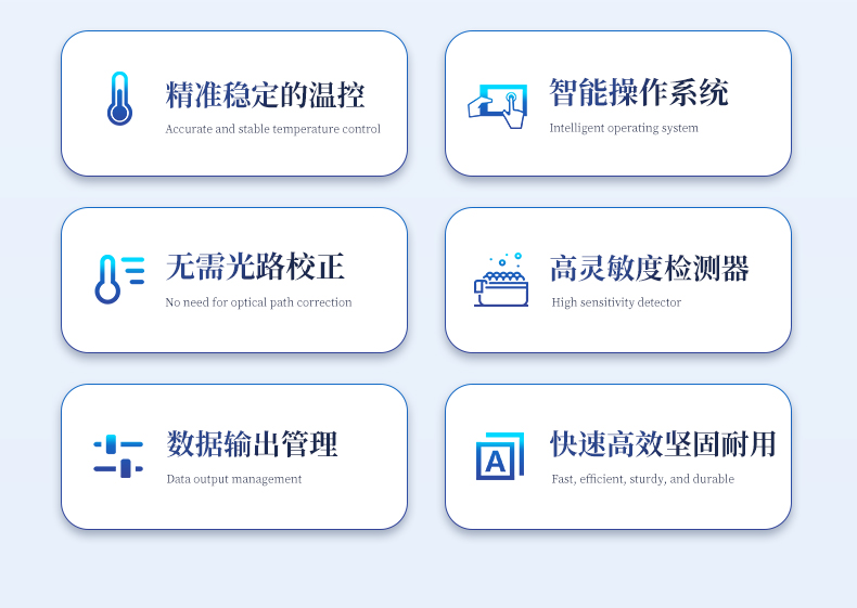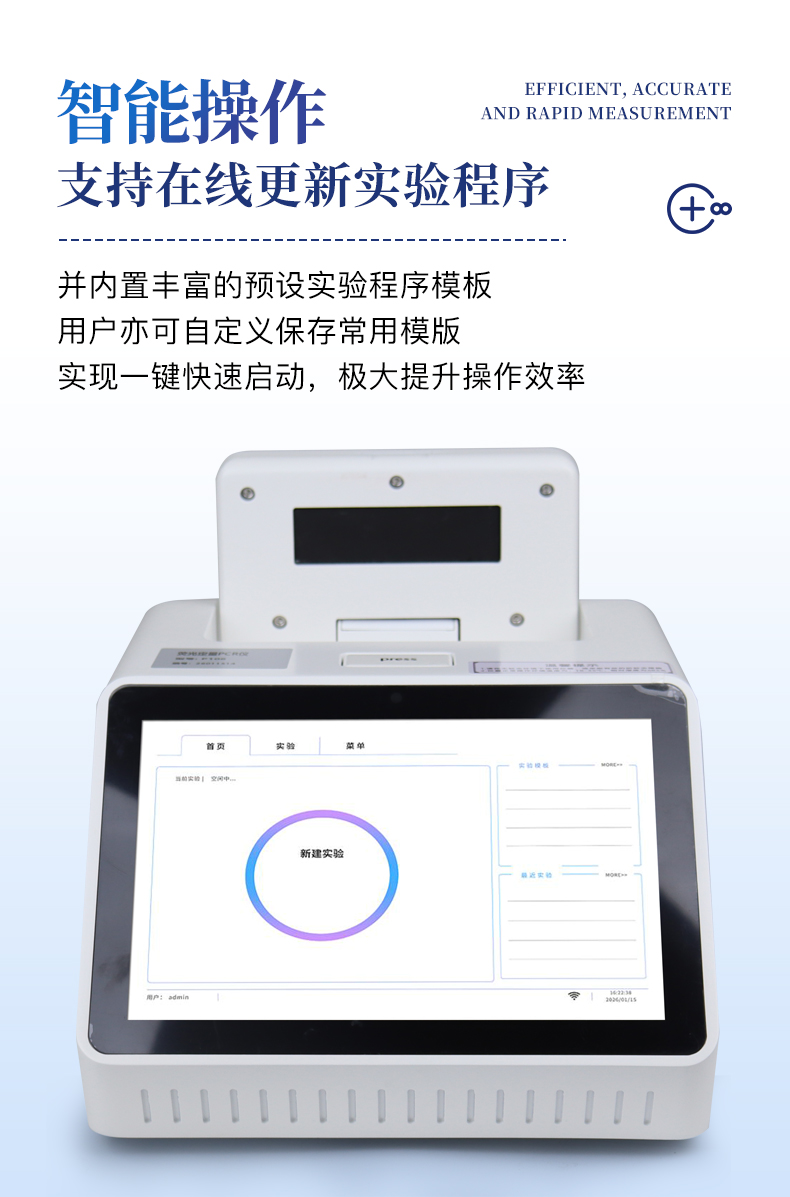 | 1.智能操作系統(tǒng),實(shí)驗(yàn)盡在掌握 | A雙模式靈活控制:支持通過(guò)儀器觸摸屏獨(dú)立運(yùn)行,也支持通過(guò)電腦軟件進(jìn)行遠(yuǎn)程控制與數(shù)據(jù)管理,適應(yīng)不同實(shí)驗(yàn)場(chǎng)景需求。 | B程序更新與預(yù)設(shè):支持在線更新實(shí)驗(yàn)程序,并內(nèi)置豐富的預(yù)設(shè)實(shí)驗(yàn)程序模板,用戶亦可自定義保存常用模版,實(shí)現(xiàn)一鍵快速啟動(dòng),極大提升操作效率。 | C極簡(jiǎn)啟動(dòng)體驗(yàn)(可選配):可定制集成攝像頭掃描系統(tǒng),用戶只需掃描樣品板或程序卡的二維碼,即可自動(dòng)識(shí)別并調(diào)用對(duì)應(yīng)實(shí)驗(yàn)程序,簡(jiǎn)化流程,避免人為設(shè)置錯(cuò)誤。 | D操作簡(jiǎn)單:無(wú)論是觸摸屏界面還是電腦軟件,均設(shè)計(jì)得直觀易懂,新用戶也能快速上手。預(yù)置常用程序模板,進(jìn)一步簡(jiǎn)化操作流程。 | 2.精準(zhǔn)穩(wěn)定的溫控與光學(xué)核心 | A長(zhǎng)久精準(zhǔn)的溫控系統(tǒng):采用進(jìn)口***TEC半導(dǎo)體制冷模塊,控溫精準(zhǔn)(±0.1°C),孔間溫度均勻性**(≤±0.3°C)。系統(tǒng)穩(wěn)定性卓越,長(zhǎng)期使用性能衰減小,校準(zhǔn)周期長(zhǎng)達(dá)數(shù)年,顯著降低維護(hù)成本與運(yùn)營(yíng)中斷。 | B免維護(hù)的靈敏光學(xué)系統(tǒng):配備4個(gè)獨(dú)立LED光源與4個(gè)獨(dú)立光電二極管檢測(cè)器,實(shí)現(xiàn)四通道熒光同步精準(zhǔn)檢測(cè)。采用超長(zhǎng)壽命進(jìn)口光源,設(shè)計(jì)壽命期內(nèi)免維護(hù),無(wú)需額外校準(zhǔn)或更換,保障檢測(cè)結(jié)果長(zhǎng)期一致性與高靈敏度。 | C卓越的數(shù)據(jù)質(zhì)量:實(shí)驗(yàn)線性相關(guān)性高(R2≥0.999),重復(fù)性優(yōu)異(孔間CV值低),確保定量結(jié)果準(zhǔn)確可靠,數(shù)據(jù)置信度高 | 3.**便捷的數(shù)據(jù)與輸出管理 | A多重?cái)?shù)據(jù)導(dǎo)出方式:支持通過(guò)USB存儲(chǔ)設(shè)備直接拷貝,或經(jīng)由Wi-Fi無(wú)線網(wǎng)絡(luò)傳輸數(shù)據(jù)至本地服務(wù)器或云端,方便靈活,滿足各類(lèi)實(shí)驗(yàn)室數(shù)據(jù)管理習(xí)慣。 | B豐富的報(bào)告導(dǎo)出與打印:支持生成并導(dǎo)出多種格式(如PDF、Excel)的實(shí)驗(yàn)報(bào)告。儀器兼容USB熱敏打印機(jī)、藍(lán)牙無(wú)線打印機(jī)及常規(guī)A4打印機(jī),可直接在儀器上或通過(guò)電腦一鍵導(dǎo)出并打印專(zhuān)業(yè)報(bào)告,便于結(jié)果存檔與即時(shí)分享。 | 4.快速**與堅(jiān)固耐用 | A升降溫速度快:優(yōu)化設(shè)計(jì)的溫控系統(tǒng)具備高速升降溫能力,顯著縮短單次循環(huán)與整體檢測(cè)時(shí)間,提升實(shí)驗(yàn)通量。 | B超長(zhǎng)使用壽命:核心部件均選用工業(yè)級(jí)耐用材料與設(shè)計(jì),整機(jī)運(yùn)行穩(wěn)定可靠,致力于為用戶提供長(zhǎng)久的投資回報(bào)。 |
